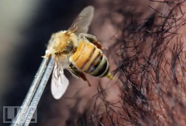 5. Представьте себе, что вас ужалила пчела … нарочно, в медицинских целях. Это идея апитерапии (пчелоужаления) , иначе говоря, метода стратегического введения пчелиного жала, который был разработан как народное целительное средство в Китае. С тех пор он стал популярным методом альтернативной медицины для излечения многих болезней, включая подагру, ревматоидный артрит, синдром хронической усталости и фибромиалгию. На фотографии: апитерапевт направляет жало пчелы к голове пациента в Индонезии.