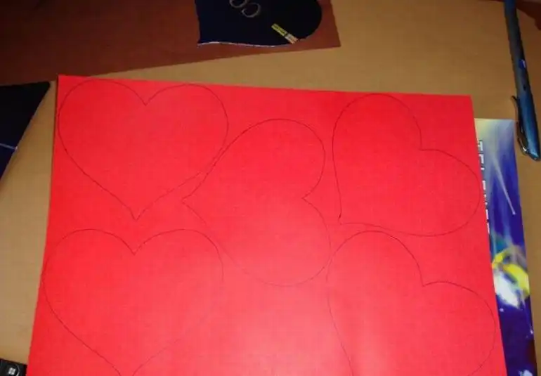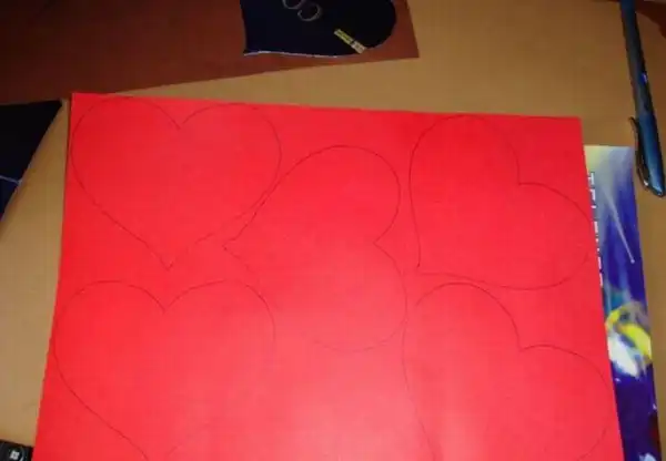 Открыточки я делал в виде сердец и чтобы открытки были одинаковы, вырезаем трафарет из картона.