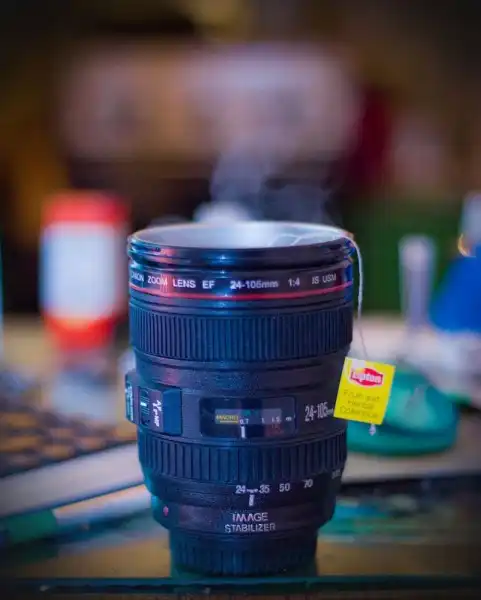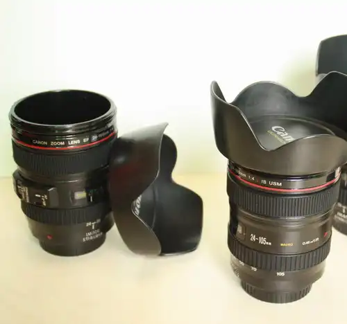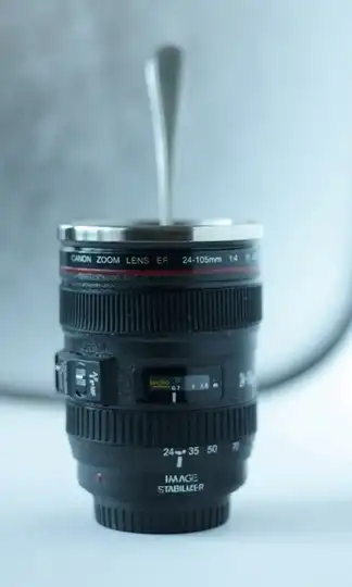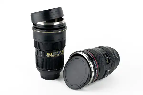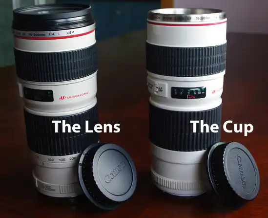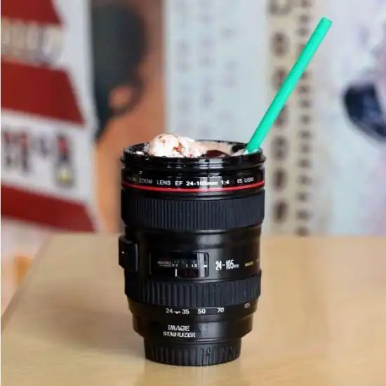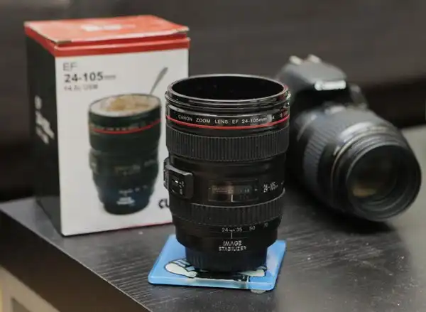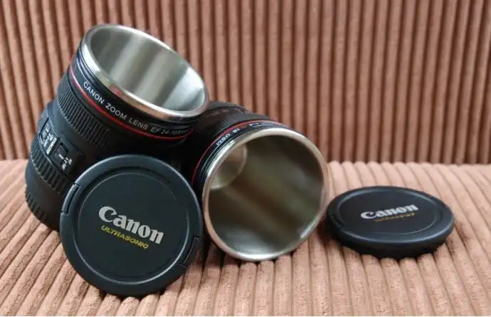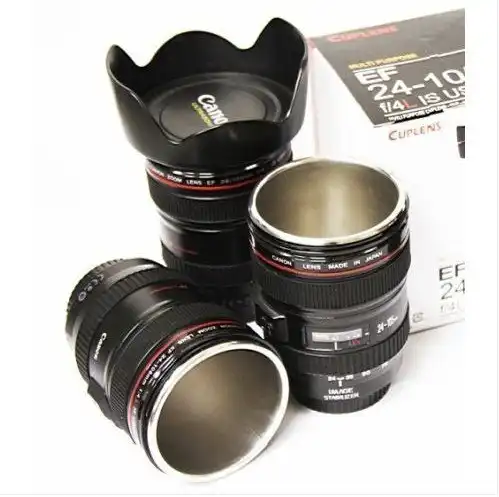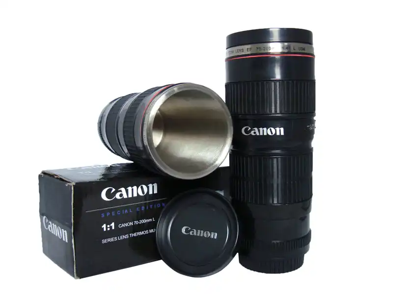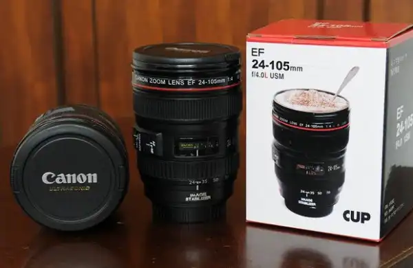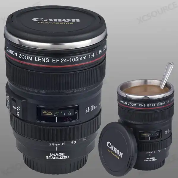 Еще более реалистично выглядит кружка объектив Canon 24-105 mm f4 — точная копия получившего широкую известность zoom-объектива EF 24-105 mm f/4L IS USM, предназначенного для профессионалов, работающих в жанре фоторепортажа. Внешний корпус кружки в виде объектива выполнен из пластика, а внутренний — из нержавеющей стали, что позволяет использовать ее в качестве термоса.