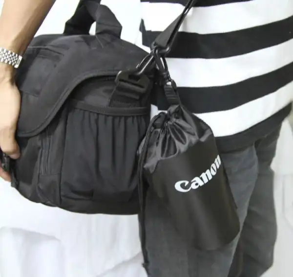 В собранном состоянии, с расстояния вытянутой руки, она практически неотличима от настоящего объектива, к тому же в комплект кружки объектива Canon входит мягкий чехол с фирменным логотипом, который удобно крепится на поясе.