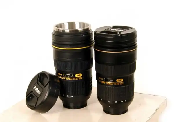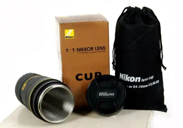 Поклонники фирмы Nikon найдут для себя подходящий сувенир. Термическая кружка объектив Nikon 24-70 mm, прототип которой в России стоит свыше 60 тысяч рублей, вам достанется практически даром. Прочная внутренняя металлическая колба, герметично закрывающаяся крышка и удобный чехол — кружка объектив выполнена из высококачественных материалов и в точности соответствует по внешней конструкции своему оригиналу. А кружка объектив Nikon 24-70 mm имеет, кроме того, вращающееся кольцо zoom’а, поднимающее верхнюю ее часть. Подвижные кнопки автофокусировки и стабилизации, детально проработанный дисплей меню дополняют иллюзию настоящего дорого объектива.