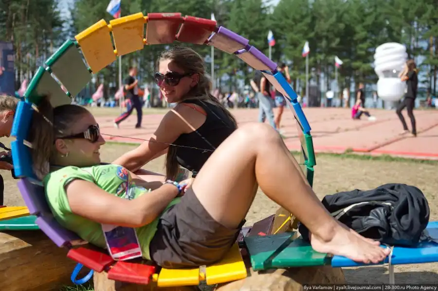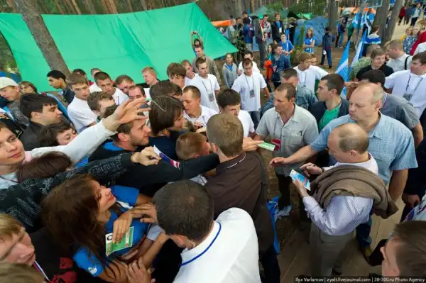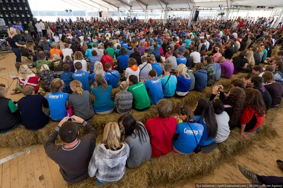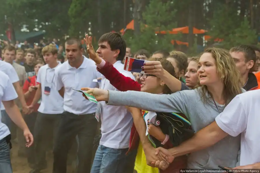 Последняя смена на Селигере политическая. На нее приехали в основном НАШИсты и их отпрыски. Форум поделили между собой хрюши, движение Сталь, Местные, какие-то экологи и другие. Кстати, “Местные” экологи по секрету рассказали, что именно они защищали Химкинский лес, но отстоять его у них не получилось. По словам активистки, это их единственное поражение.