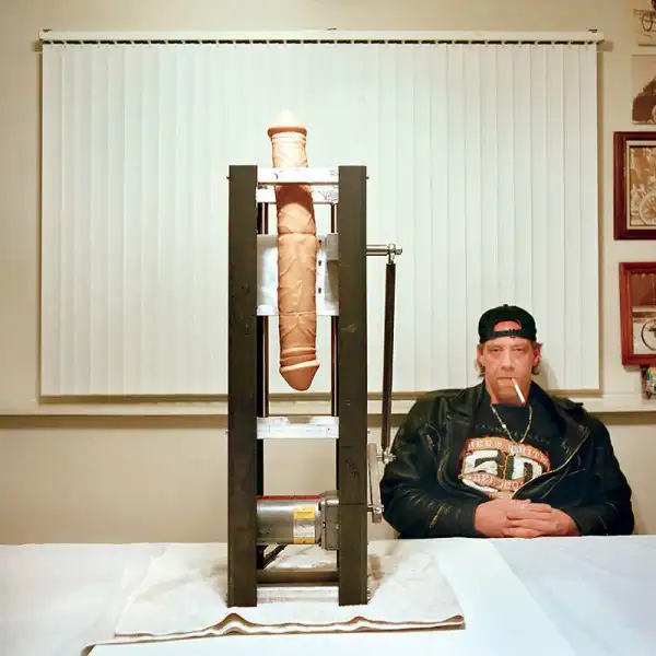 Руиин и Тьюздей, Портленд, Орегон. Руиин:«Для меня главное не оргазм, а путь к нему. То же самое с этой машиной. Мне очень нравилось ее делать, прорабатывать каждую детальку. А когда дошло до дела — ничего особенного. Да, Тьюздей один раз попробовала, и все. Когда ее у меня просят попользоваться, я, конечно, даю, но не всем. Многие люди мне просто отвратительны. А это ведь не грабли, которые даешь соседу, чтобы он свой газон почистил. В общем, не знаю, что мы с ней будем делать. Скоро Хэллоуин, вот думаю, может, присобачить на него игрушечное привидение и поставить перед домом — для детей, которые приходят за конфетами». Тьюздей: «Руиин — извращенец, это точно. Ну, не то чтобы полный извращенец. Просто он очень любит секс. Он такой: „В жизни все прекрасно“.