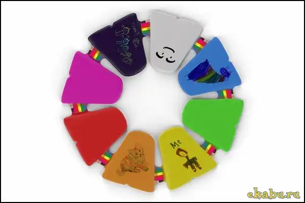Так, чтобы включить планшет Adoodle Creativity Enhancer, нужно его встряхнуть, "разбудить". А потом начинается самое интересное. Цвета для рисования можно выбирать как из палитры справа, так и создавать свои собственные, смешивая два, три или больше цветов, а затем сохраняя полученные "смеси" в палитру слева. Кроме того, можно выбрать цвет и для окрашивания самого планшета. Прилагающийся же стилус можно превратить в карандаш, ручку, мел, маркер, распылитель или кисть, просто поворачивая, будто откручивая, его верхушку. Второй стилус служит стирательной резинкой, ну а очистить планшет можно просто проведя по нему рукой, словно переворачивая странице сверху вниз.