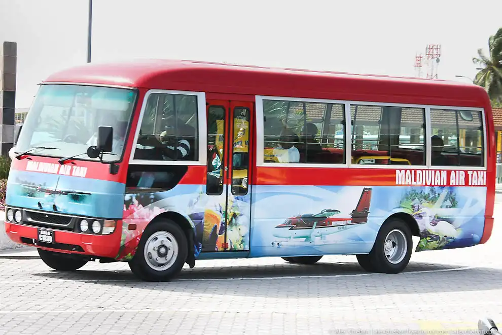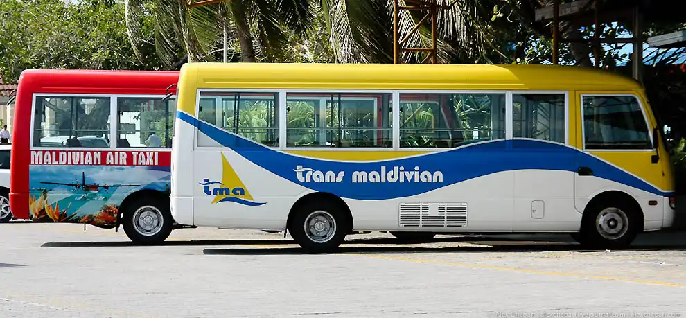 Если же ваш остров находится далеко - туда вас доставит гидросамолет одной из двух компаний - Maldivian Air Taxi или Transmaldivian, внутренний терминал находится на другой части острова, рядом с международным ожидают вот такие автобусы: