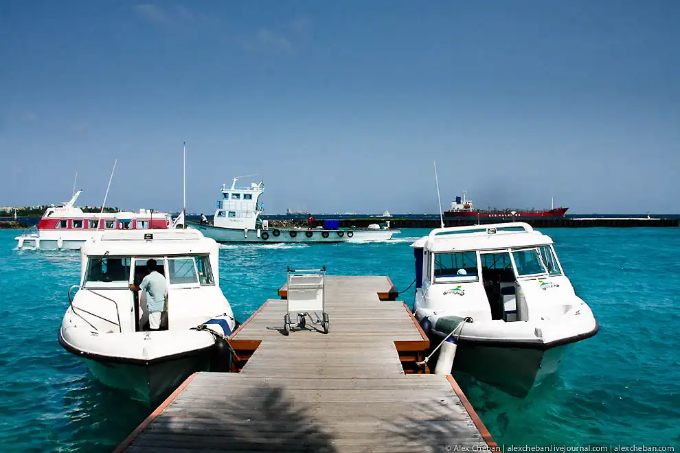 Если самолет прилетает в ночное время, то единственный выход - это гостиница. Достаточно дорогая прямо возле аэропорта и более бюджетные в Мале или на острове Хулхумале. Это "дони" - пассажирские катера, которые ходят с острова Хулуле в саму столицу Мале: