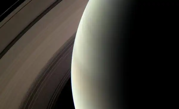 Вид на высокие широты Сатурна с высоты 541 тысяча километров: