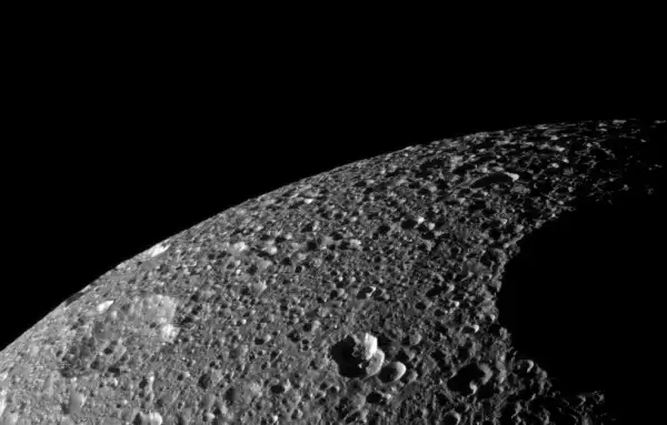 Поверхность третьей луны Сатурна - Япета. Снимок сделан с высоты около 3800 километров: