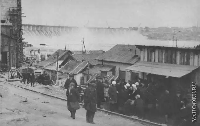 Это фото показывает дома рабочих Днепростроя и ребенка одного из них,