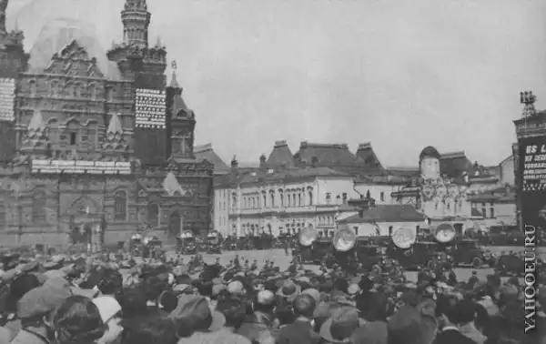 в то время как советские рабочие маршируют по красной площади.