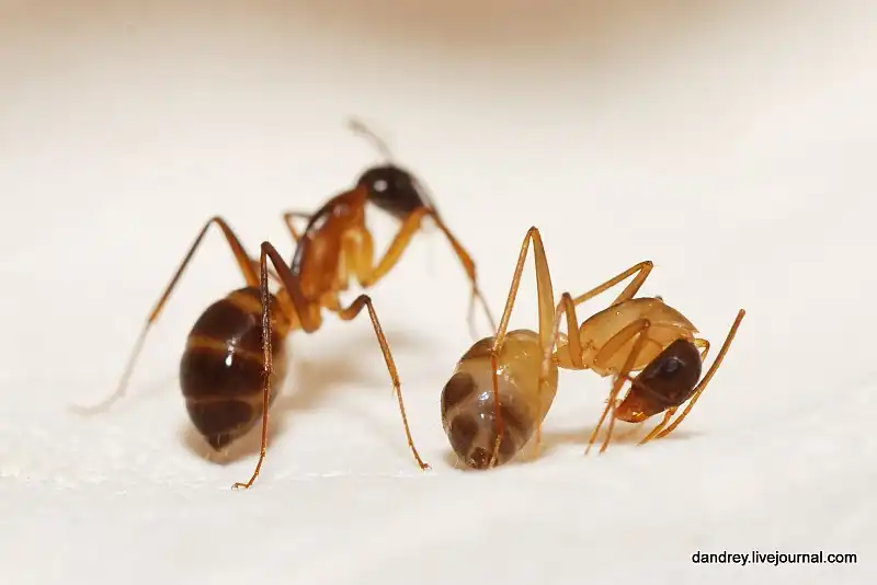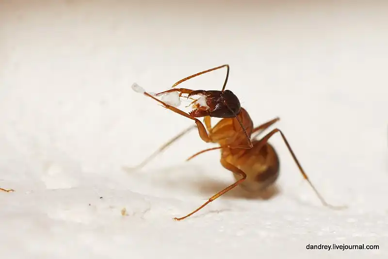 Через ровное стекло наблюдать и фотографировать муравьёв намного лучше. Наконец-то смог сфотографировать процесс распаковки новорождённого