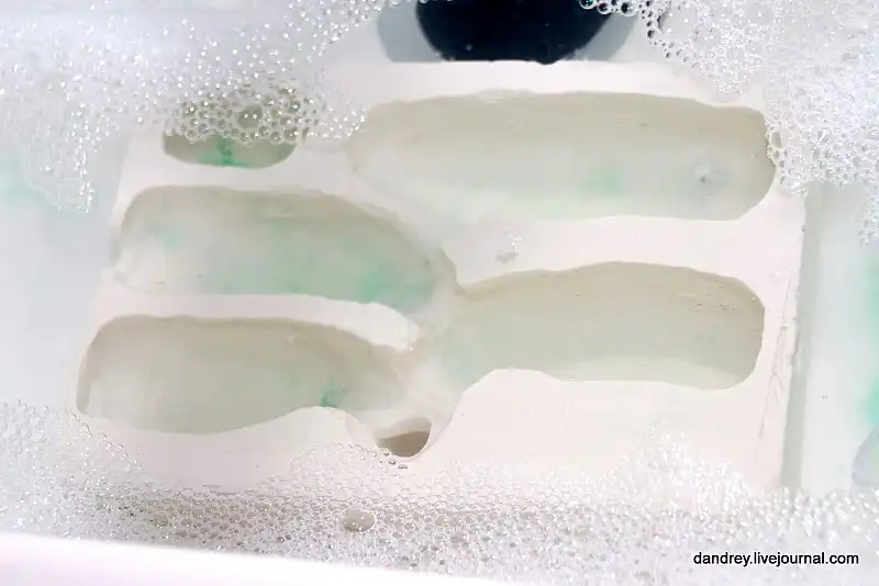 9. Замочил отливку в воде с моющим средством для посуды чтобы вымыть из гипса впитавшийся из пластилина жир.