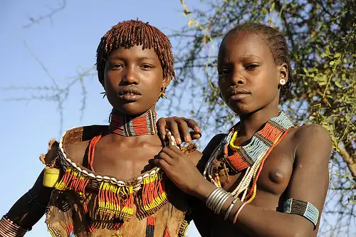 Племя хамер знаменито кровавым обрядом избиения девушек, который и является обрядом инициации для юношей, а также любовными играми. С самого утра девушки пьют ритуальный напиток, схожий с пивом, и водят хороводы. Алкоголь, жара и постоянное движение помогает им войти в состояние транса.