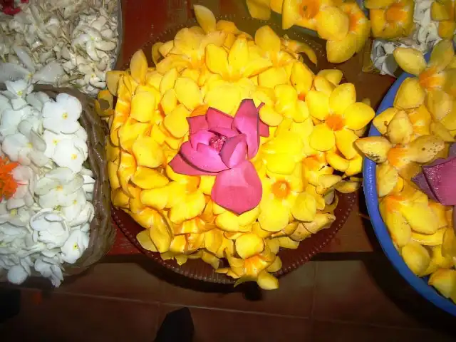 Вечером в 18:30 начинается вечернее богослужение, проходящее в основном в молитвенном помещении - «вихаре». Собираются верующие, зажигают лампадки (в качестве горючего используют пальмовое масло) и начинают затяжное буддистское песнопение на языке пали: «Bhuddam saranam gatchami, Songkram saranam gatchami...»