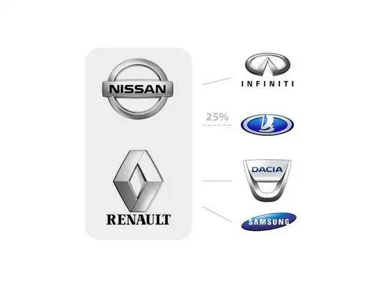 Еще одним крупнейшим мировым автопроизводителем является альянс Renault-Nissan, которому принадлежат такие марки как Renault, Dacia, Nissan, Infiniti, Samsung. Кроме того, Renault владеет 25% акций АвтоВАЗа, так что отныне марка Lada так же входит в орбиту влияния французско-японского альянса.
