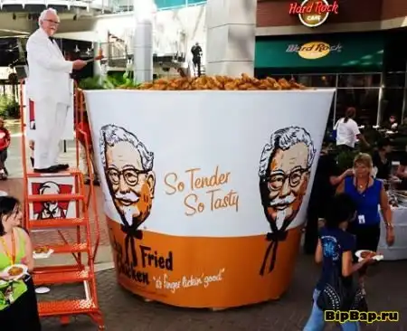 "Кентукская Жариная курица" - часть фирмы "Ям" (Yum) Брэндс инк., приготовило тысячу сто тридцать один килограмм отборнейшей жареной курицы, тем самым поставив новый мировой рекорд.