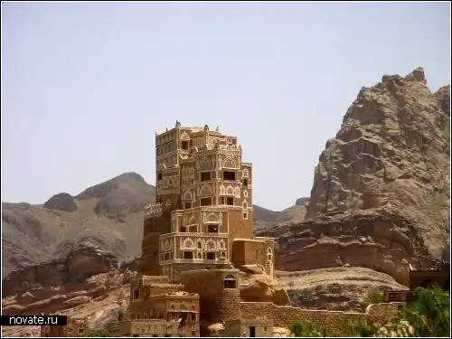 Горный дворец, а именно так переводится название этого архитектурного шедевра, был построен в 1930 году в Йемене и предназначен для проживания в нем имама Yahya. С одной стороны, дворец как дворец... Но это, во-первых, пример традиционной Йеменской архитектуры, когда колоритное масштабное здание будто бы "вырастает" из скал, а во-вторых, живописный дворец красуется над скалами в гордом одиночестве, и поэтому может быть замечен издалека, и ничто не мешает обзору как из окон дворца, так снаружи.