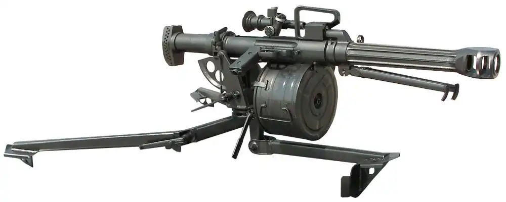 Вес: 12 кг в "легкой" модификации сприцелом и без магазина; 20 кг в "тяжелой"модификации (на станке без магазина)
