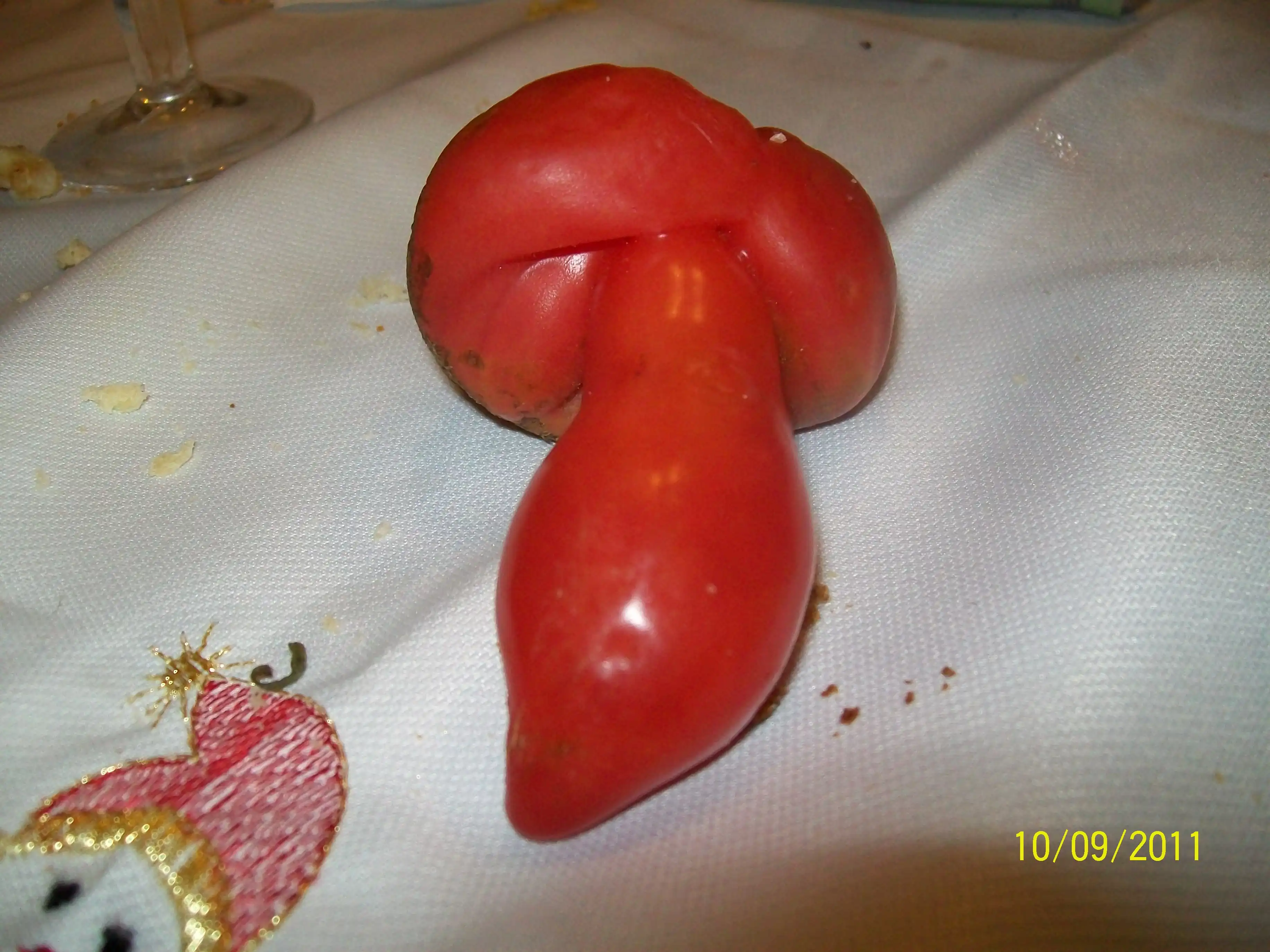 Интересно, куда этот помидор затолкали?