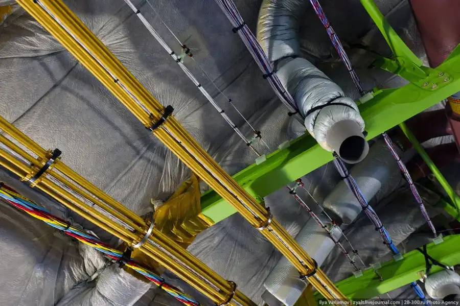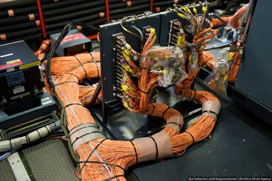 На самолете порядка 570 километров проводов. На испытательном борту, наверное, раза в 3 больше.