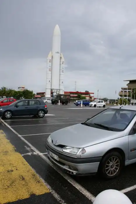 Это макет ракеты-носителя Ариан-5. Первоначально предназначался для запуска людей. Но, потом его разжаловали только для запуска спутников.
