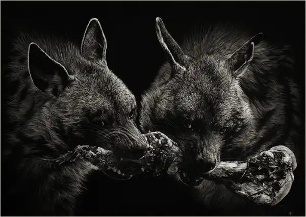 Если вы спросите у художника, что нового он создал, а тот ответит: «Да так, кое-что нацарапал» - знайте, что перед вами человек, не понаслышке знакомый с техникой гратографии, или граттажа. Оба термина восходят к французскому слову со значением «скрести, царапать». Живущая в Калифорнии художница-самоучка Кристина Пенеску создает потрясающие работы в этой технике. Ее портреты волков – еще один пример гиперреализма в искусстве.