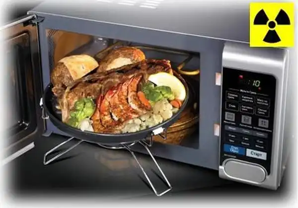Микроволновые печи не являются радиоактивными. Они, так же как и солнце, и огонь просто нагревают еду. Печи излучают микроволны, которые вызывают трение молекул воды (дипольный сдвиг), в результате чего происходит нагревание.