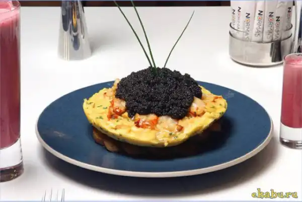 Самый дорогой в мире омлет подают Нью-Йорке, в ресторане отеля Le Parker Meridien. Такой завтрак обойдётся вам в тысячу долларов. Он приготовлен из шести яиц, 300 граммов севрюжьей икры и целого лобстера.