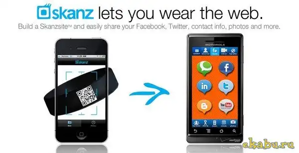 Идея проста: вы регистрируетесь на официальном сайте компании Skanz и заполняет анкету, указав контактную информацию, добавив фото и, по желанию, дугой контент, вроде музыки. После чего следует тут же заказать силиконовый браслет или «шкурку» для телефона (9 и 19 долларов соответственно). На покупку будет нанесён QR-код, содержащий ссылку на вашу страничку. Стоит «пройтись» по вещице QR-сканером (доступен для большинства смартфонов), и новый знакомый тут же увидит ваш профайл на skanz.com, а так же сможет сохранить данные на своём телефоне.