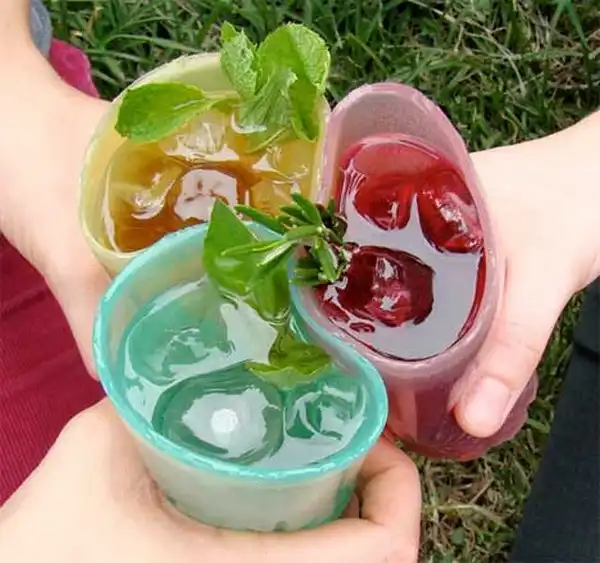 Не правда ли, очень неприятно выискивать себе в лесу или парке уютное местечко, пробираясь через груды мусора, оставшегося после других любителей пикников на природе. Причем львиную долю этого мусора составляют целлофановые пакеты и пластиковая посуда. Еды практически не остается, а вот посуды - завались. Стало быть, для пикников нужна такая посуда, которую тоже можно съесть. Да и эти разноцветные мармеладно-желейные стаканчики Jelloware наверняка понравятся и взрослым, и детворе, не говоря уже о посуде из твердой вафли. Ну, а если такая посуда не кажется аппетитной, ее можно без зазрения совести оставить под кустом: ее наверняка склюют птички, погрызут бродячие собаки, ну или же она сама вскоре разложится и станет удобрением.