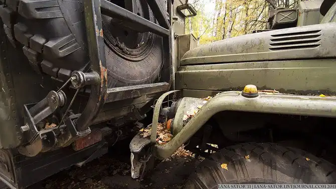 Пара минут ожидания – никаких звуков, никаких людей. Вспоминаем, что вроде бы около часа назад миновали остатки какого-то забора,- пара поваленных столбов и остатки колючей проволоки… Выходим на дорогу, подходим ближе к грузовику, обходим кругом…