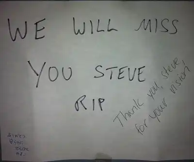 Записка поклонников Джобса, оставленная в дверях фирменного магазина Apple