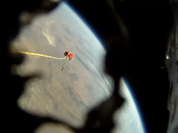 По мне так она максимум до верхнего слоя стратосферы поднялась. Или чуть выше побывав в стратопаузе. Это еще не открытый космос. =)