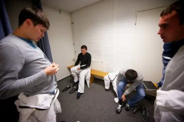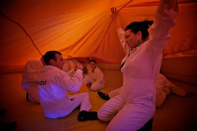 34. Утром в учебном центре «Кондор». В начале бортпроводники надевают специальную форму для тренировок