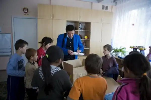 57. Каждому ребенку Мурат подарил сувениры в форме самолета. Детям было очень приятно увидеть человека в форме. Но по словам нашего героя, сегодняшние дети не столь искренние, как были в его время