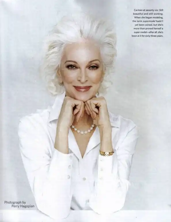 Кармен родилась 03.06.1931г. Впервые её снимки появились в ""Harper's Bazaar" в 1941, а уже в 1945 она стала лицом "Vogue" с тех времён и началась её профессиональная карьера. В этом году 66 лет как она работает на подиуме !!!