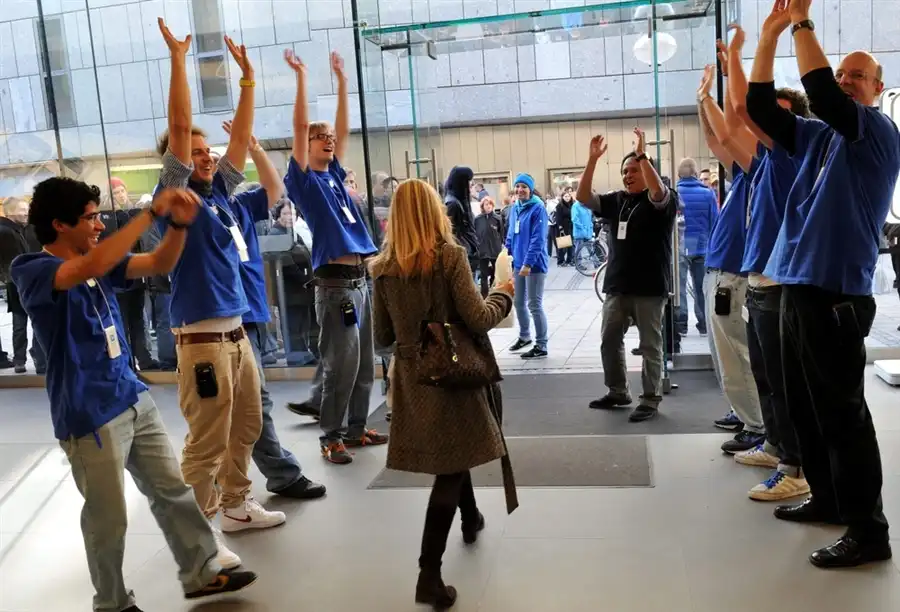 Сотрудники магазина аплодируют первым покупателям, которые приобрели новый iPhone 4S в Apple Store в Мюнхене. 28 октября смартфон планируется вывести в Австрию, Бельгию, Чешскую Республику, Данию, Эстонию, Финляндию, Венгрию, Ирландию, Италию, Латвию, Лихтенштейн, Литву, Люксембург, Мексику, Нидерланды, Норвегию, Сингапур, Словакию, Словению, Испанию, Швецию и Швейцарию - всего 22 государства.