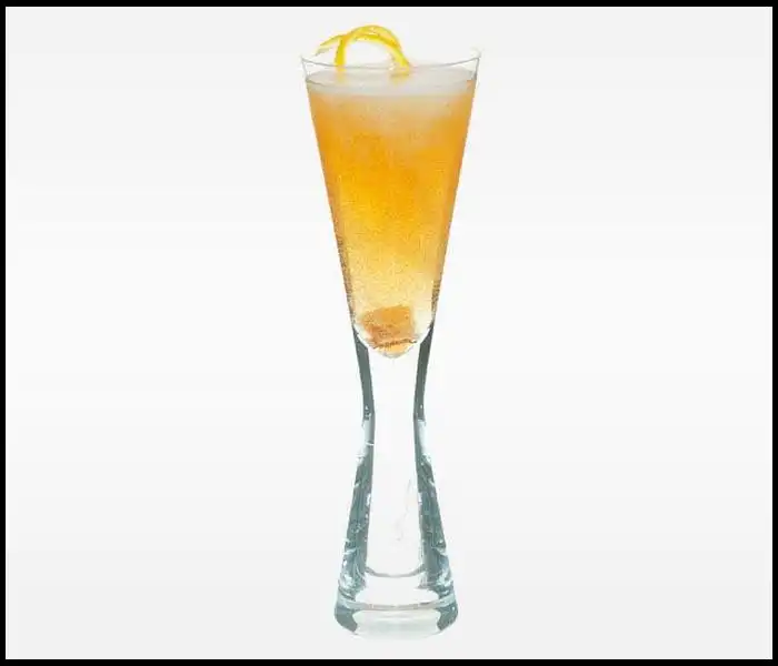 Смешайте сок и холодный чай в фужере, залейте сверху шампанским, украсьте цедрой апельсина. Питательность этого легкого коктейля колеблется в пределах 100 калорий, что на целых 50% меньше, чем у джина с тоником (то есть, выпить его можно в два раза больше).