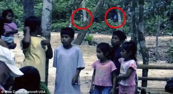 Они снимали группу местных детишек и уже позже, пересматривая записи, увидели странных существ выглядывающих из леса.