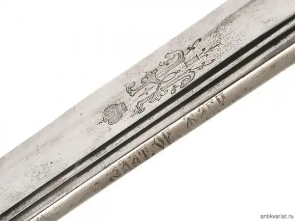 Палаш кирасирский солдатский образца 1826 года имел у основания клейма военной приемки, а на спинке помещена гравированная надпись: "Златоустъ февраля 1831 года".