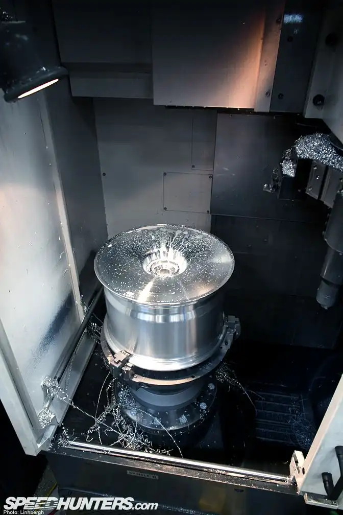 С помощью различных резцов, на станке с ЧПУ вырезают нужный дизайн спиц для будущих дисков.