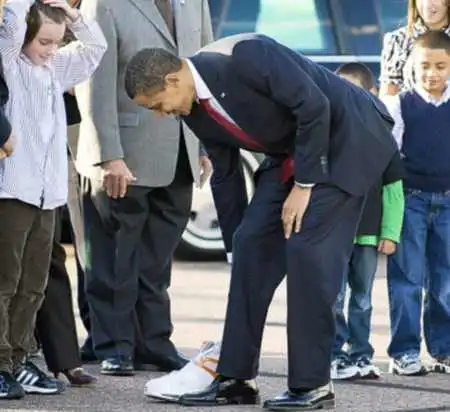 Известный баскетболист Шакил О'Нил носит кроссовки 55 размера. На фото Барак Обама рядом с легендарными кроссовками
