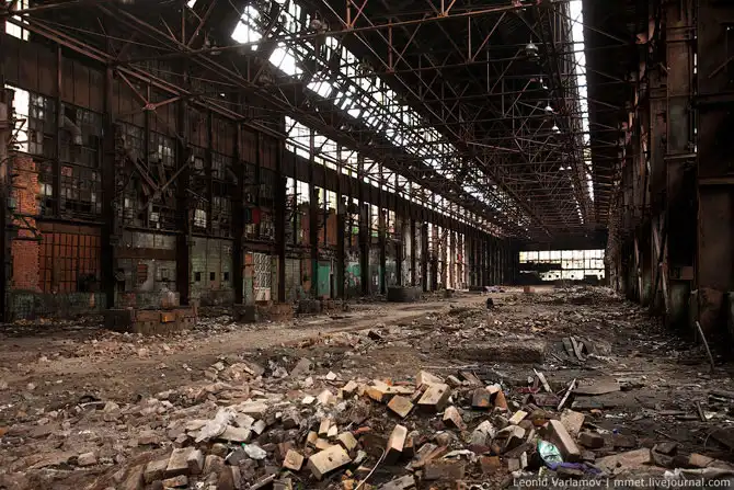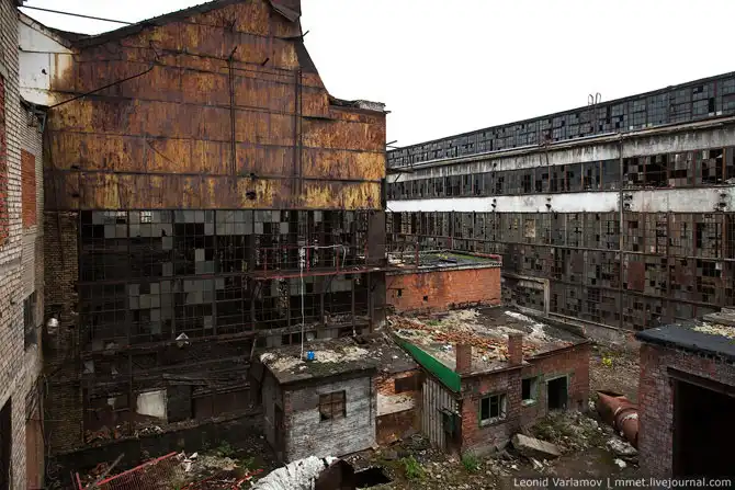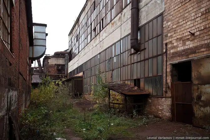 Старые кузнечные цеха забросили первыми. Со стороны железной дороги они элегантно прикрыты сеточкой