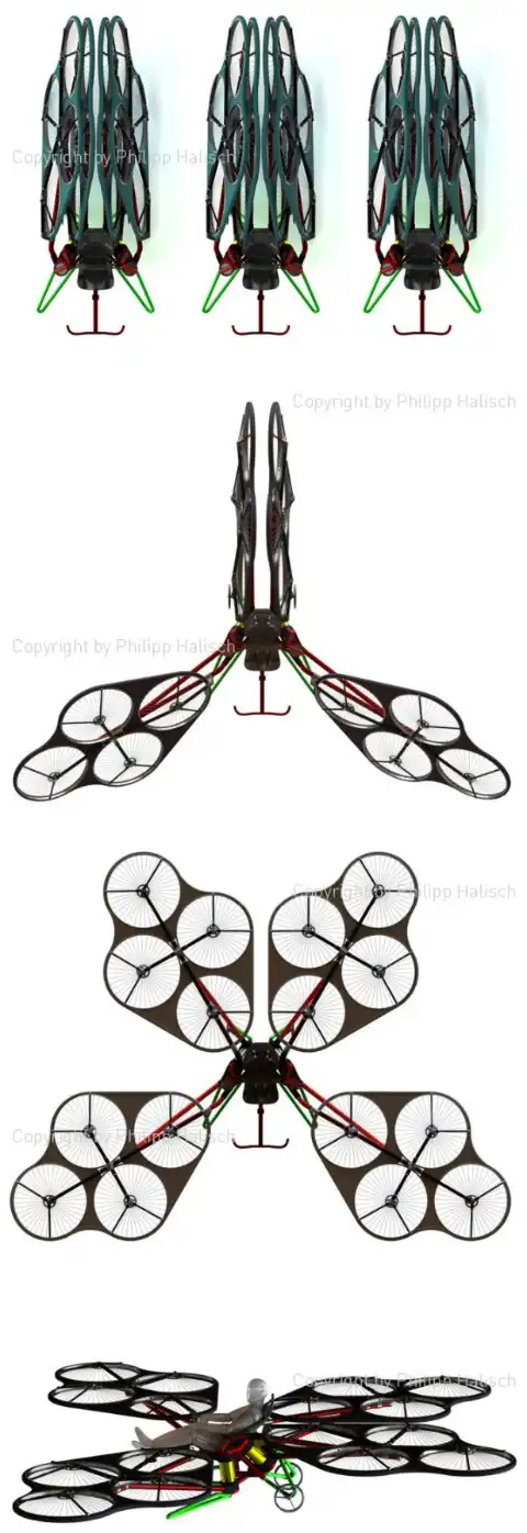 Варианты будущего дизайна предполагают, что e-multicopter (так разработчики тоже называют свой аппарат) будет складным.