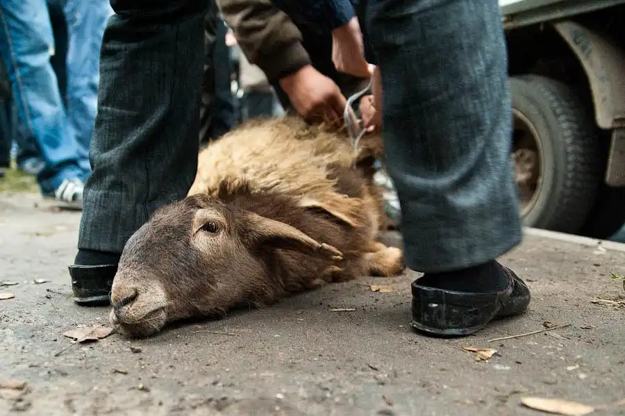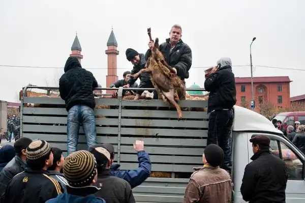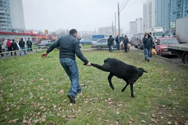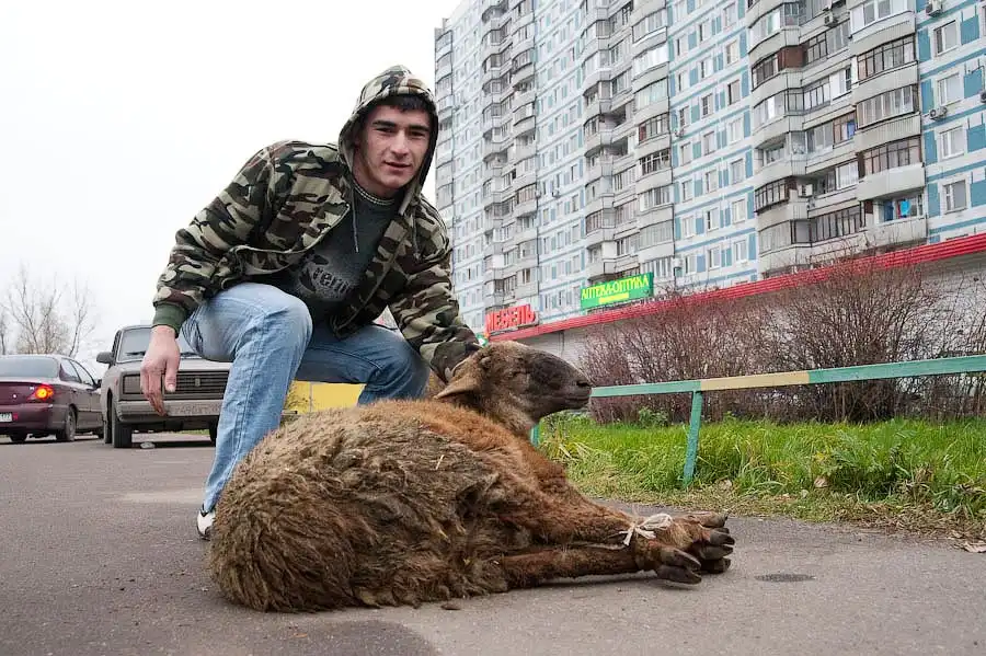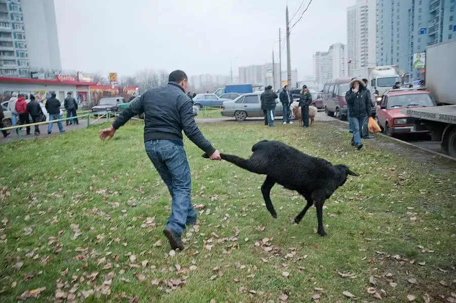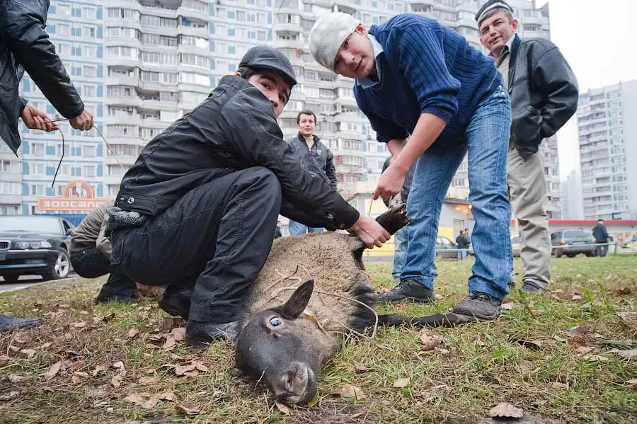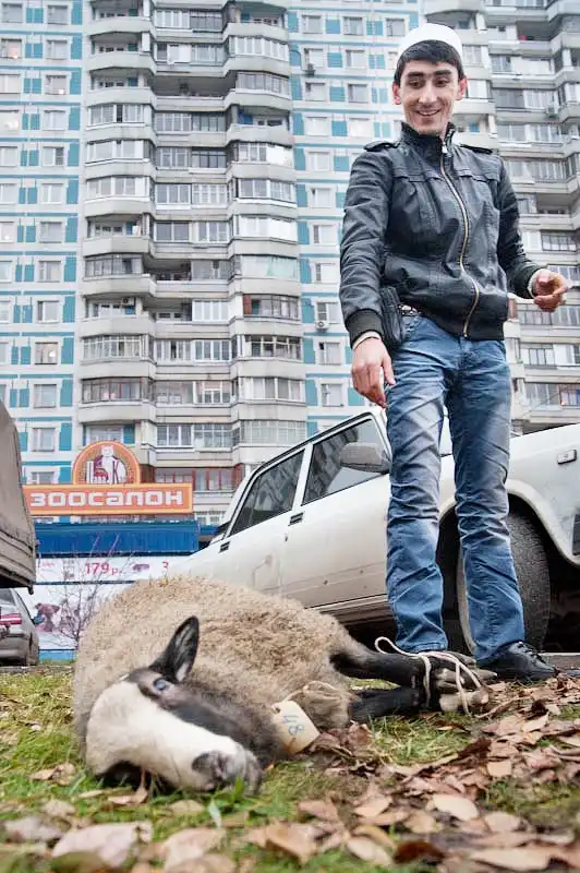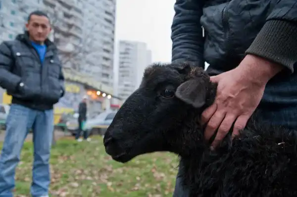 Новостные сайты рунета пишут: "В Москве обряд жертвоприношения в массовом порядке не проводится уже несколько лет. А мясо для всех желающих привозят из Подмосковья."