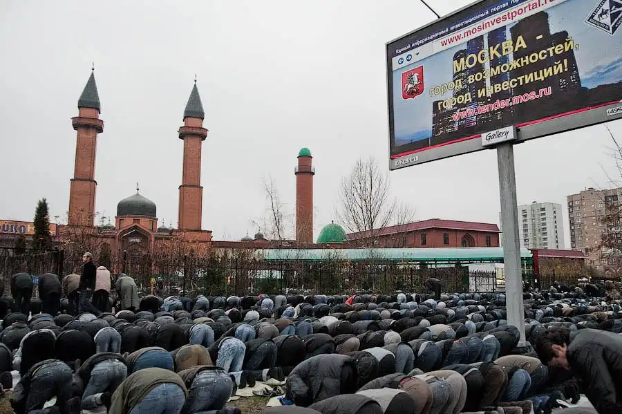 “Пост из прошлого о завтрашнем празднике Курбан-Байрам”: Сегодня десятки тысяч мусульман заполнили улицы у Соборной мечети в Москве, где прошел торжественный намаз по случаю окончания хаджа и наступления праздника жертвоприношения Ид аль-Адха (Курбан-Байрам).