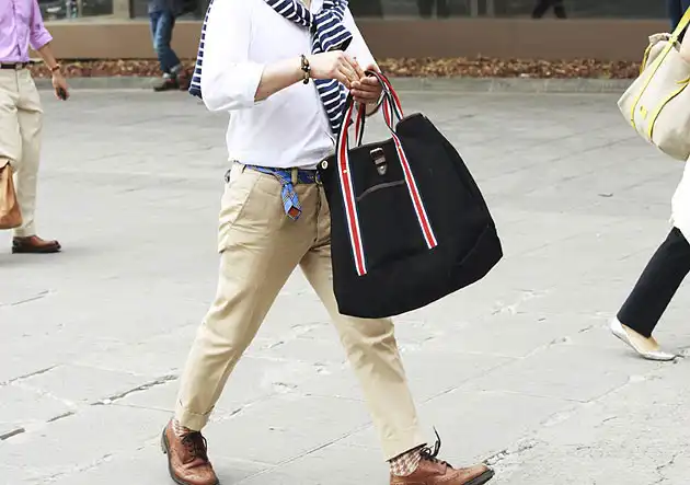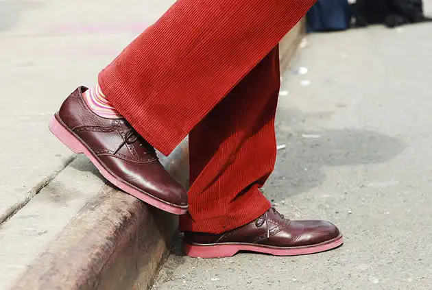 Материал носков особого значения для стиля не имеет. Хлопковые — самые практичные, шерстяные — не подходят для активной жизни, но хорошо выглядят с костюмом, а кашемировые носки не годятся для каждодневной носки — они требуют тщательного и деликатного ухода.