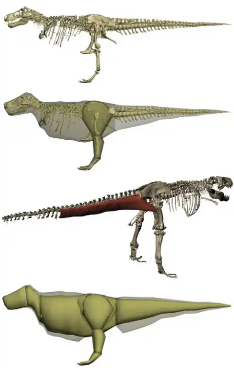 Цифровые сечения тел T.rex были получены благодаря имеющимся знаниям о костной и мягких тканях птиц и крокодилов. Поверх тканей учёные наложили виртуальную кожу. Затем были просчитаны массы каждой части тела (за вычетом полостей вроде лёгких и ртов).