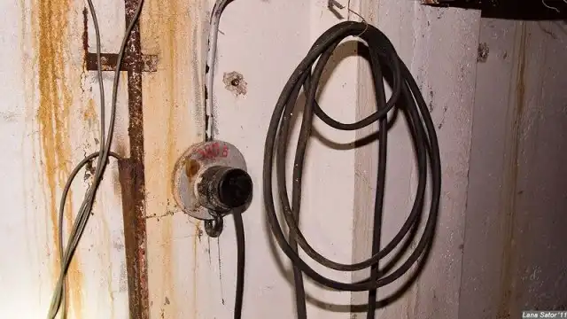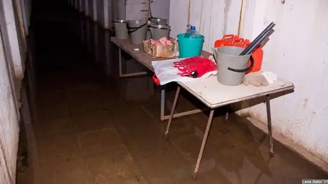 На полу широко разлилась вода. Грани между "сухо" и "сыро" выглядели очень резкими, стало понятно, что затопление происходит в настоящем времени.