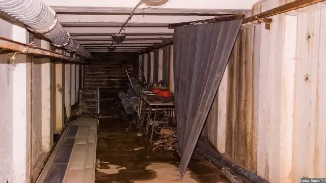 Планировка сооружения оказалась очень незатейливая - коридор между входами, и П-образный коридор со странными приспособами по стенам.